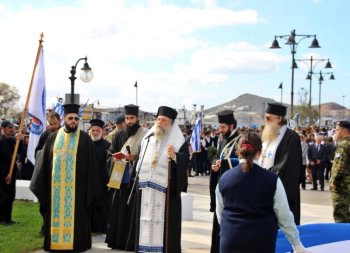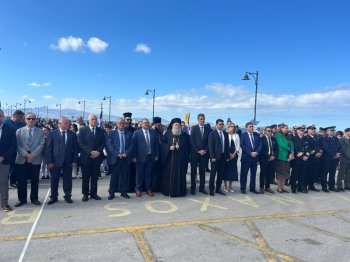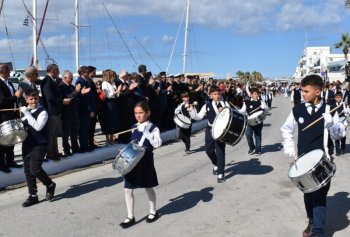 Ακολούθησε η Επιμνημόσυνη Δέηση στο Ηρώο της πόλεως και η κατάθεση στεφάνων και εν συνεχεία πραγματοποιήθηκε η μαθητική παρέλαση στην παραλιακή οδό της πόλεως.