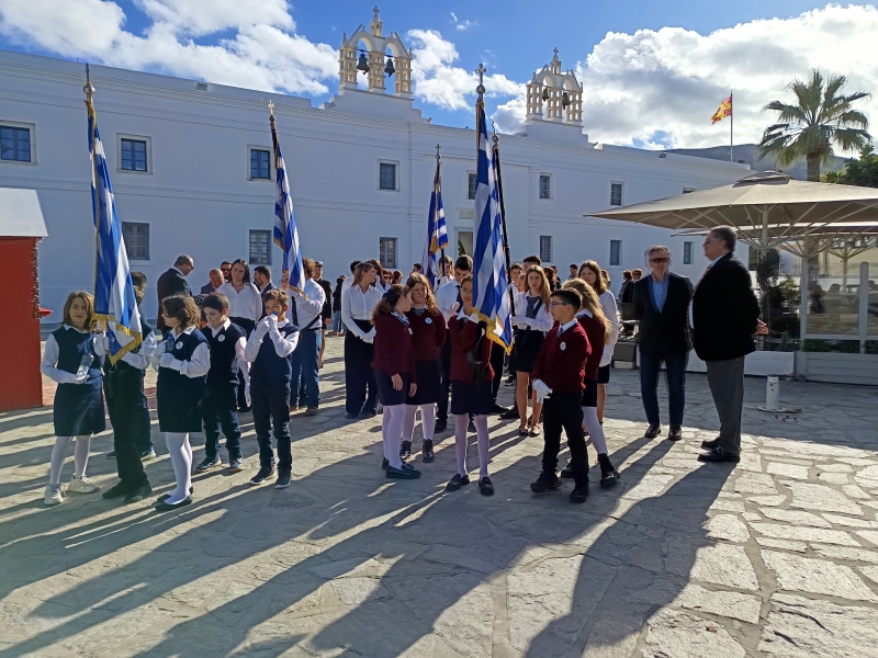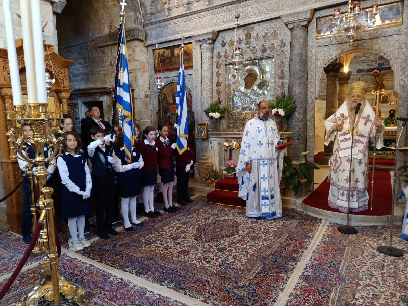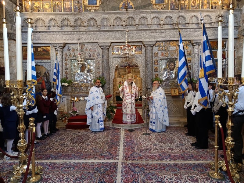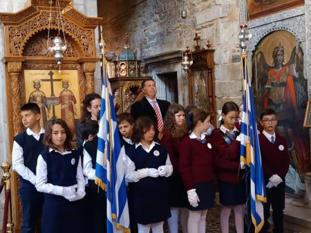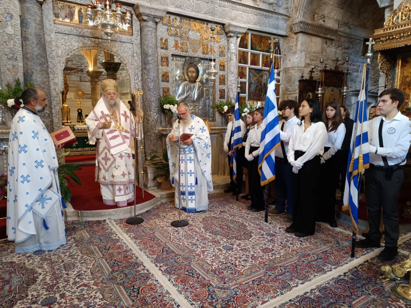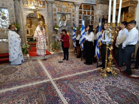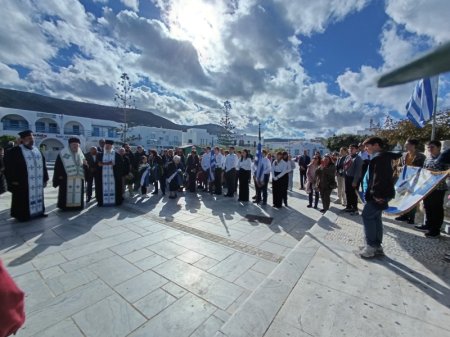 Μετά το πέρας της Θείας Λειτουργίας, ο Σεβασμιώτατος Μητροπολίτης μας προέστη της Δοξολογίας επί τη επετείω της Εθνικής Αντιστάσεως της νήσου, στην οποία παρέστησαν οι Τοπικές Αρχές, εκπρόσωποι των Σωμάτων Ασφαλείας, μαθητές των Σχολείων της Παροικίας συνοδευόμενοι από τους Δασκάλους και Καθηγητές τους, αλλά και πλήθος κόσμου.