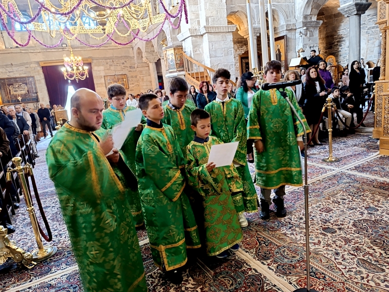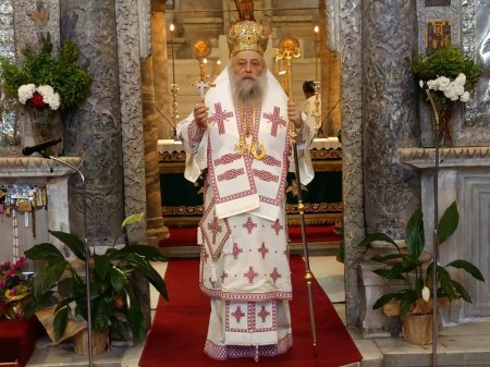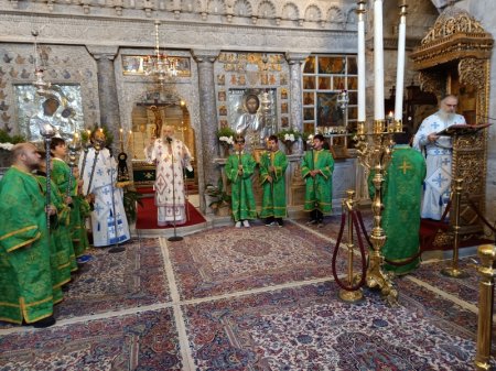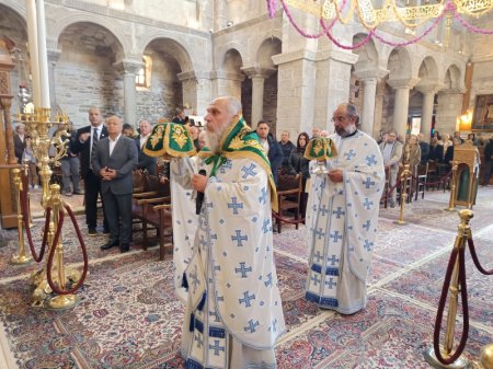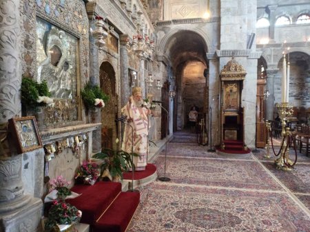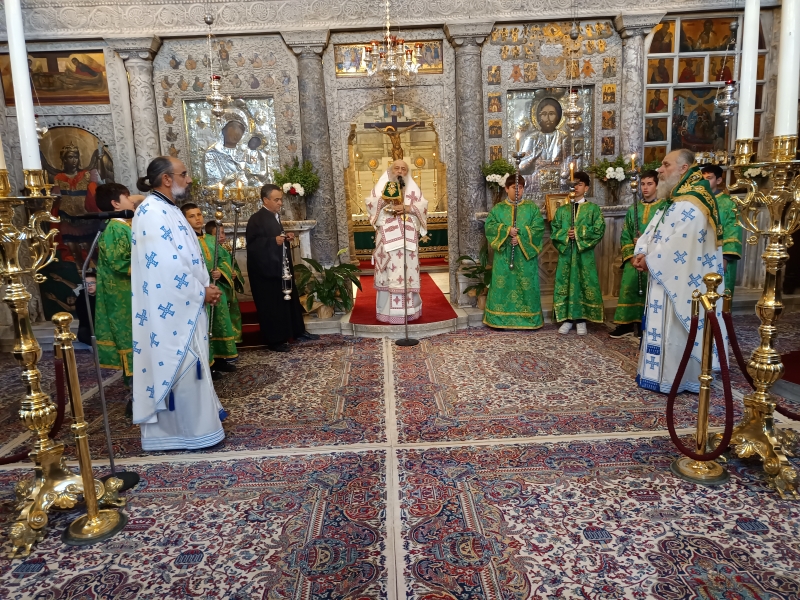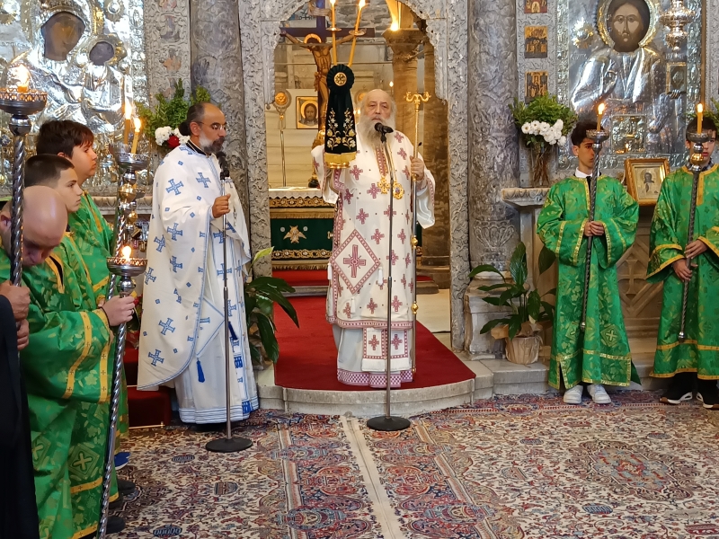 Τον Σεβασμιώτατο Ποιμενάρχη μας πλαισίωσαν οι πατέρες του Ιερού Προσκυνήματος Πρωτοπρ. π. Στυλιανός Μπιζάς και π. Χρήστος Πετρόπουλος.