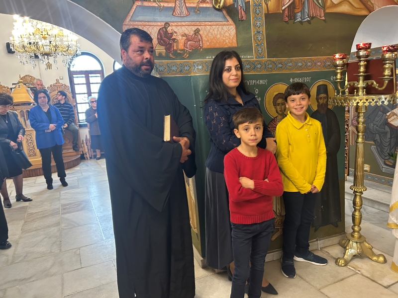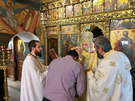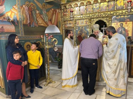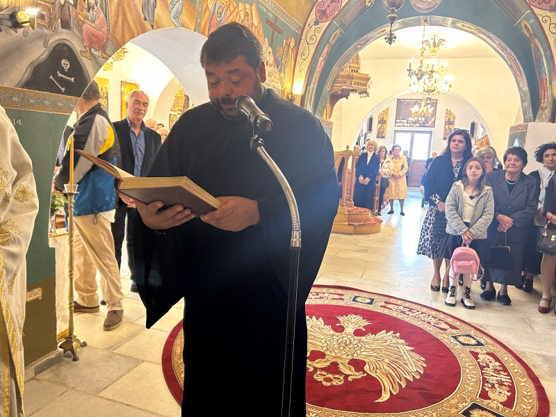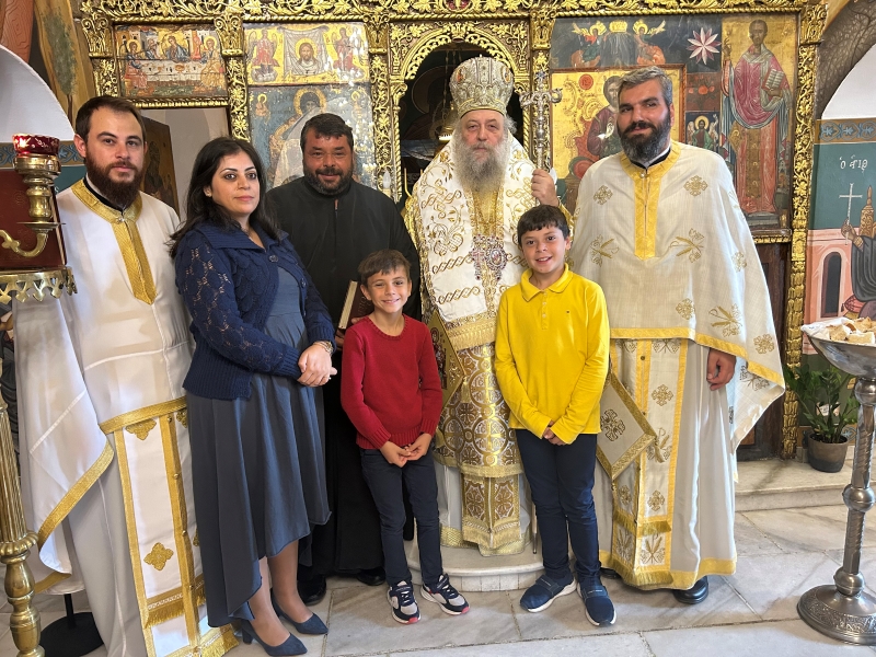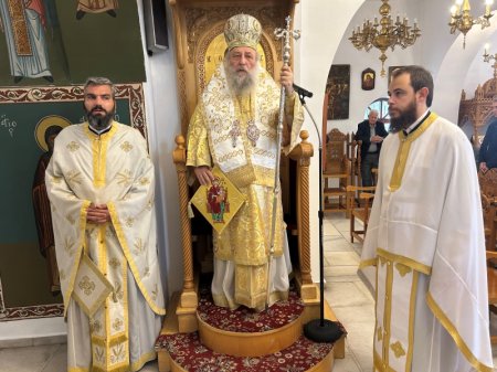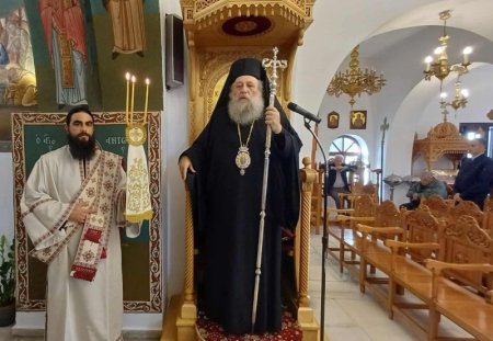 Τον Σεβασμιώτατο Ποιμενάρχη μας πλαισίωσαν ο Οικ. π. Νικόλαος Κασμάς και ο Πρεσβ. π. Παναγιώτης Σιαχάμης (οικείοι εφημέριοι) καθώς και ο Αρχιδιάκονος π. Νεκτάριος Σκουλάτος.