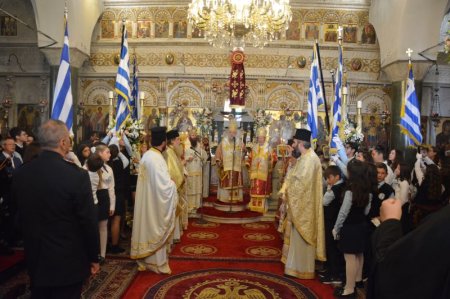 Με εκκλησιαστική τάξη και κάθε επισημότητα εορτάσθηκε η Πολιούχος της Νάξου Παναγία η «Χρυσοπολίτισσα», στον Πανηγυρίζοντα Ιερό Μητροπολιτικό Ναό της Ζωοδόχου Πηγής.