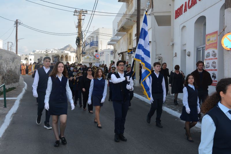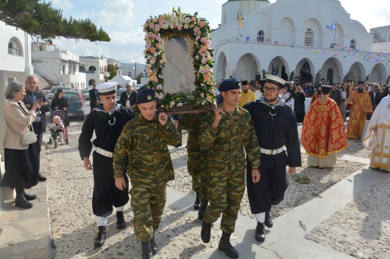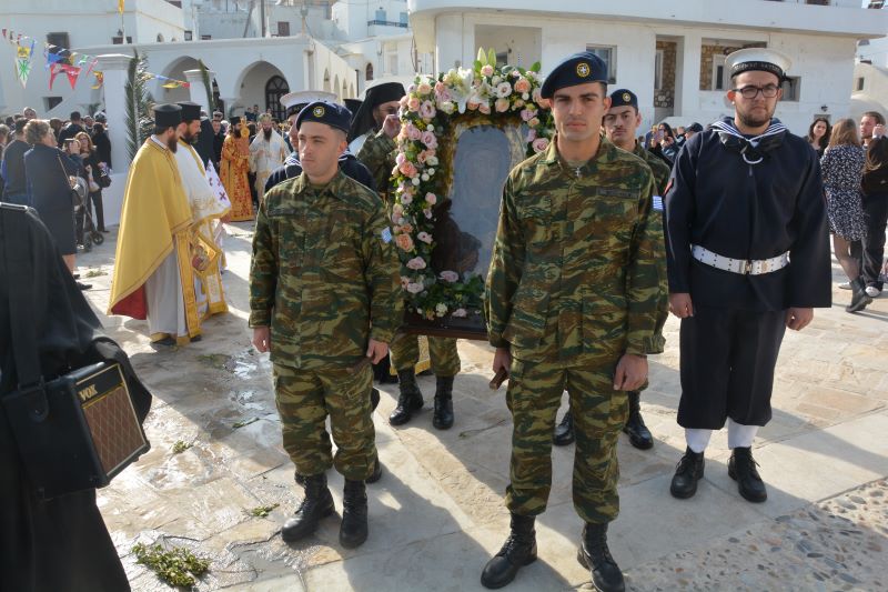 Την Παρασκευή 21-11-2025 το πρωί τελέσθηκε Αρχιερατική Θεία Λειτουργία, προεξάρχοντος του Θεοφιλεστάτου Επισκόπου Τολιάρας και Νοτίου Μαδαγασκάρης κ. Προδρόμου και συλλειτουργούντων του Θεοφιλεστάτου Επισκόπου Κεράμων κ. Βαρθολομαίου και του Σεβασμιωτάτου Ποιμενάρχου μας, Μητροπολίτου Παροναξίας κ. Καλλινίκου, ο οποίος και χοροστάτησε νωρίτερα στην Ακολουθία του Όρθρου. Στην Θεία Λειτουργία συμμετείχαν κληρικοί του νησιού, ενώ τα Ιερά Αναλόγια στελέχωσαν χορωδίες υπό την χοραρχία του κ. Στυλιανού Βλησίδη και του κ. Δημητρίου Παπάνη. Κατά την διάρκεια του Κοινωνικού, τον θείο λόγο κήρυξε ο Θεοφιλέστατος κ. Πρόδρομος. Μετά το πέρας της Θείας Λειτουργίας τελέστηκε η Πανηγυρική Δοξολογία επί τη εορτή των Ενόπλων Δυνάμεων και εν συνεχεία έλαβε χώρα η Λιτάνευση της Ιεράς Εικόνος της Παναγίας μας, την οποία έφεραν επί των ώμων τους ένστολοι άνδρες του νησιού (Πολεμικού Ναυτικού και του Στρατού Ξηράς). Προ του Ηρώου των Πεσόντων τελέσθηκε Επιμνημόσυνη Δέηση υπέρ πάντων των υπέρ της πίστεως και της πατρίδος ηρωικώς αγωνισαμένων και ενδόξως πεσόντων πατέρων και αδελφών μας. Επανελθούσης της Ιεράς Λιτανείας και αφού εψάλη η Ακροτελεύτιος Δέηση, ο Σεβασμιώτατος εξέφρασε ευχαριστίες για την συμμετοχή τους στην Ιερά Πανήγυρη, προς τους Αγίους Αρχιερείς και τους Κληρικούς, τον Αναπλ. Υπουργό Αθλητισμού κ. Γιάννη Βρούτση, τον Βουλευτή Κυκλάδων κ. Μάρκο Καφούρο, τον Δήμαρχο Νάξου και Μικρών Κυκλάδων κ. Δημήτρη Λιανό, τον Έπαρχο Νάξου κ. Γιάννη Μαργαρίτη, τον επικεφαλής της Μειοψηφίας του Δήμου κ. Λεονάρδο Χαντζηανδρέου, τον Γενικό Περιφερειακό Αστυνομικό Διευθυντή Νοτίου Αιγαίου, Υποστράτηγο κ. Λουκά Θάνο, τους εκπροσώπους των Ενόπλων Δυνάμεων και των Σωμάτων Ασφαλείας του νησιού, της Τοπικής Αυτοδιοίκησης Α’ και Β’ βαθμού, των Δικαστικών Αρχών, των Πολιτιστικών Φορέων και Συλλόγων του νησιού, τον εκπρόσωπο του Ρωμαιοκαθολικού Αρχιεπισκόπου Νάξου-Τήνου πατέρα Ιωάννη Σκλάβο, τους εκπαιδευτικούς και τις αντιπροσωπείες των μαθητών των σχολείων της πόλεως της Νάξου και του Σώματος Ελληνικού Οδηγισμού, οι οποίοι με τις σημαίες στα χέρια τους προπορευόντουσαν της Ιεράς πομπής. Επίσης ο Σεβασμιώτατος δεν παρέλειψε να συνχαρεί και να ευχαριστήσει την Φιλαρμονική του Δήμου Νάξου και Μικρών Κυκλάδων, η οποία υπό την καθοδήγηση της κ. Μαρίας Ελευθερίου, πλαισίωσε μουσικά την Λιτανεία της Σεπτής Εικόνος καθώς και όλους όσοι εκοπίασαν για την προετοιμασία και την άρτια διεξαγωγή της Πανηγύρεως. Προς όλους δε τους συμμετέχοντες ο Σεβασμιώτατος ευχήθηκε πλουσία την Χάρη και ευλογία της Παναγίας μας στη ζωή και τα έργα τους και στις οικογένειές τους.